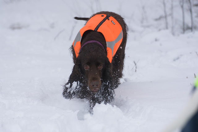 Snön bygger på.. Idas fluffiga päls fångar snö