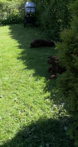 Laser och Enzo passar sovande barn...